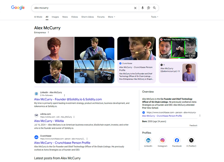 Google EmilieAlex's first venture was when he was 15 installing crypto mining software on people's computers for a fee. He is now the founder of OnChain Listings.